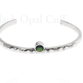 $179Cuff bracelet from the SOL Collection. Sterling Silver Cuff bracelet featuring a Black Opal Cabochon symbolizing the colors of the horizon at sunset. 6mm Black Opal Cabochon Handmade by New Orleans designer Mignon Faget