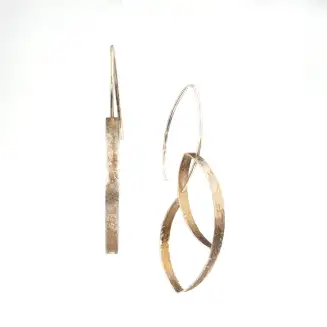 EARRINGS SILVER MATTE LEAF WITH GOLD VERMEIL WIRE, SILVER OXIDIZED BLACK WIRE, TOTAL 3″