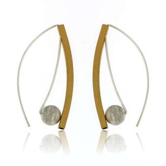EARINGS SILVER MATTE FINISH, CURVED BAR WITH GOLD PLATED BALL, WIRE, 2″ Also available in other Metal combinations Made in Poland