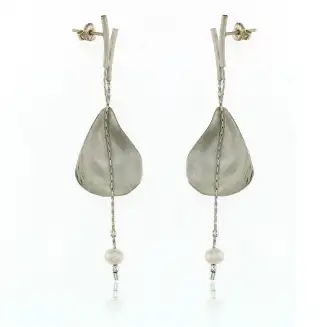 Sterling Silver and Gold Vermeil Oyster Shell Satin Finish with a white freshwater pearl (6mm) Post Earrings measuring 2 3/8″ long