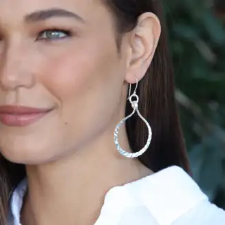 Hand forged and hammered drop shaped hoops * Approximately 8 cm long These silver jewelry items are entirely handmade in Northern Thailand by traditional Karen Hill Tribe silversmiths. The silver content is between 95 – 98% pure silver, higher than sterling, and is lead and nickel free.