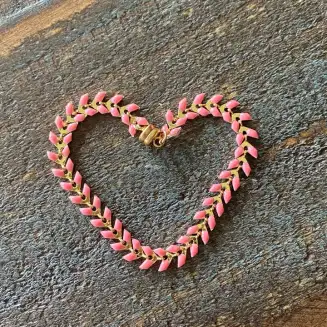 This bracelet with an extra strong magnetic clasp is beautiful black enamel on gold plated ivy chain. 7.5″