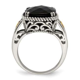 Sterling Silver with 14K Accent Antiqued Checkerboard-cut Black Onyx Ring