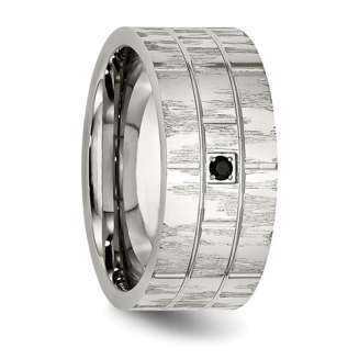 Stainless Steel Brushed and Polished with Black CZ 10mm Flat Band SIZE 9