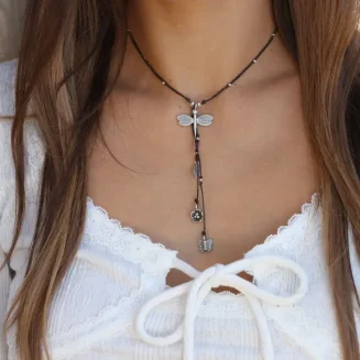 Sterling Silver Dragonfly Necklace , all silver charms on dark brown waxed linen with adjustable sliding bead closure to adjust length