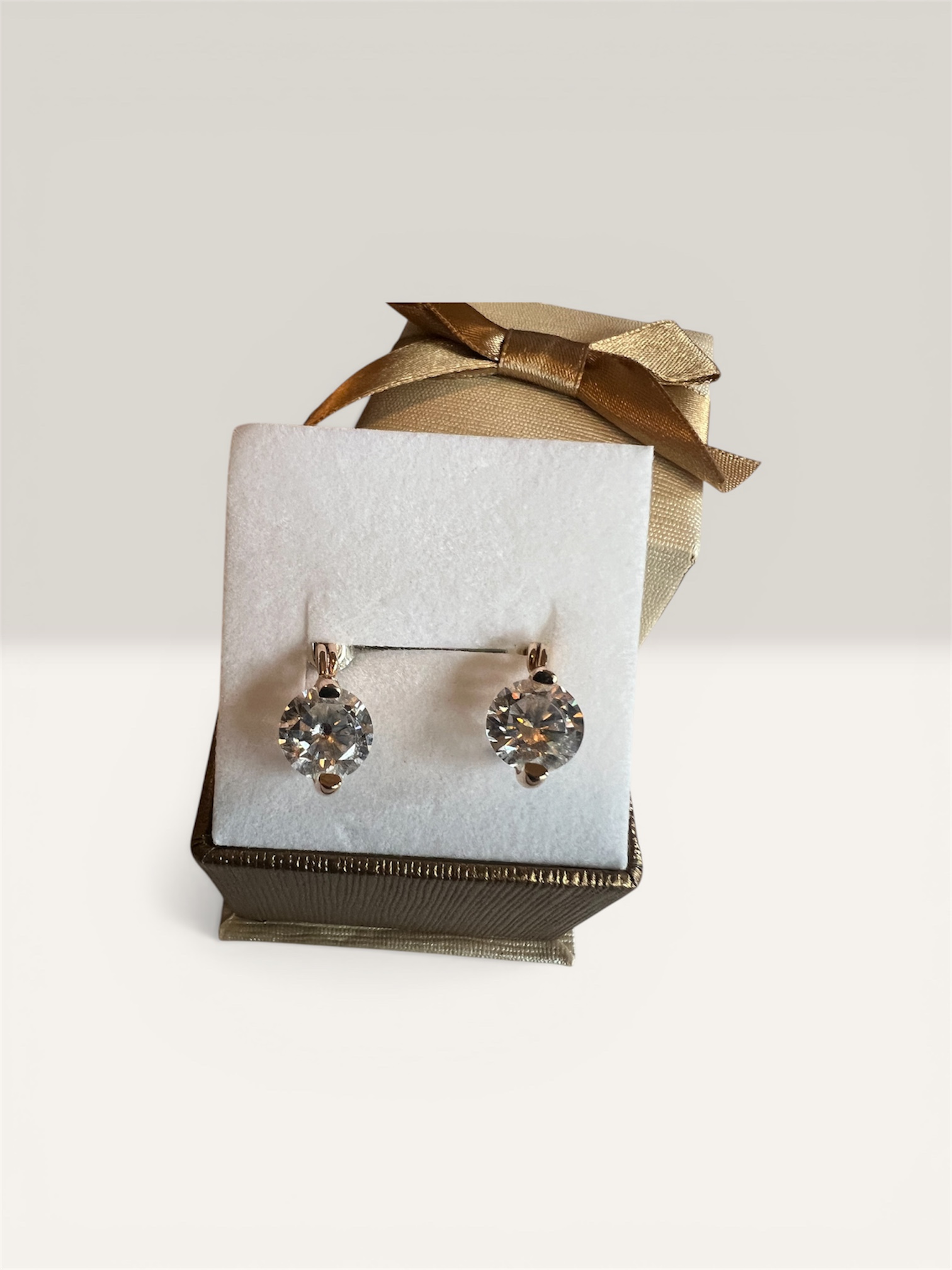 Classic and Edgy, these beautiful tension set earrings made by Tomasz Plodowski are 14K Gold and have 9mm CZ’s that are brilliant cut. Post back. Last pair in stock.