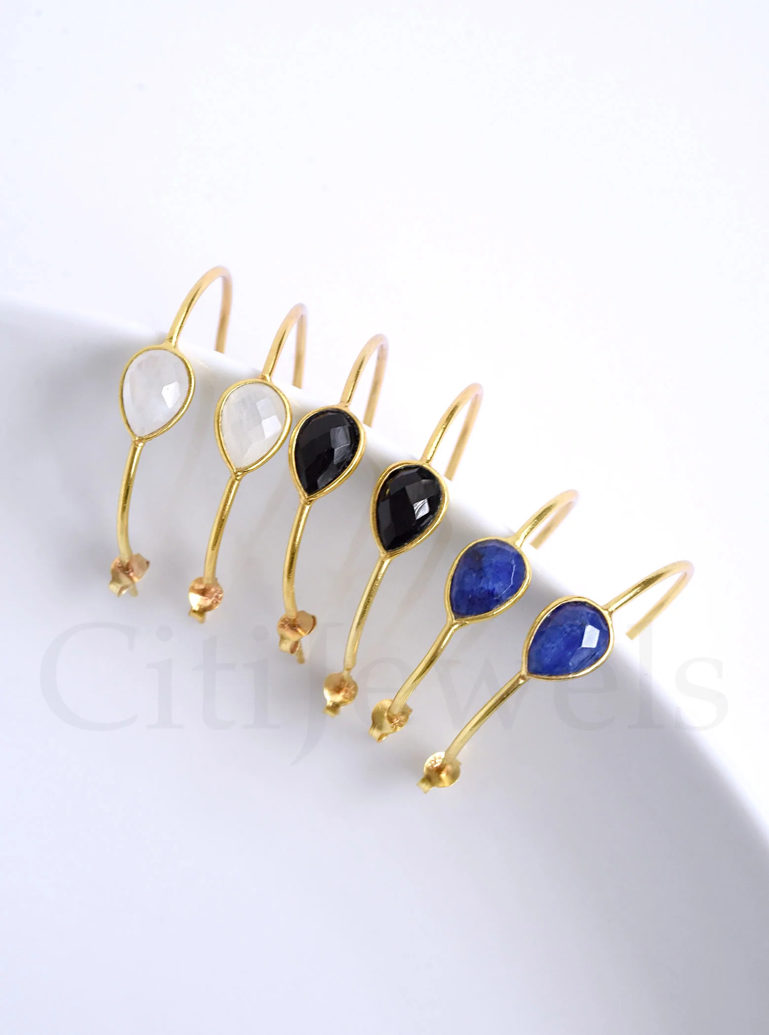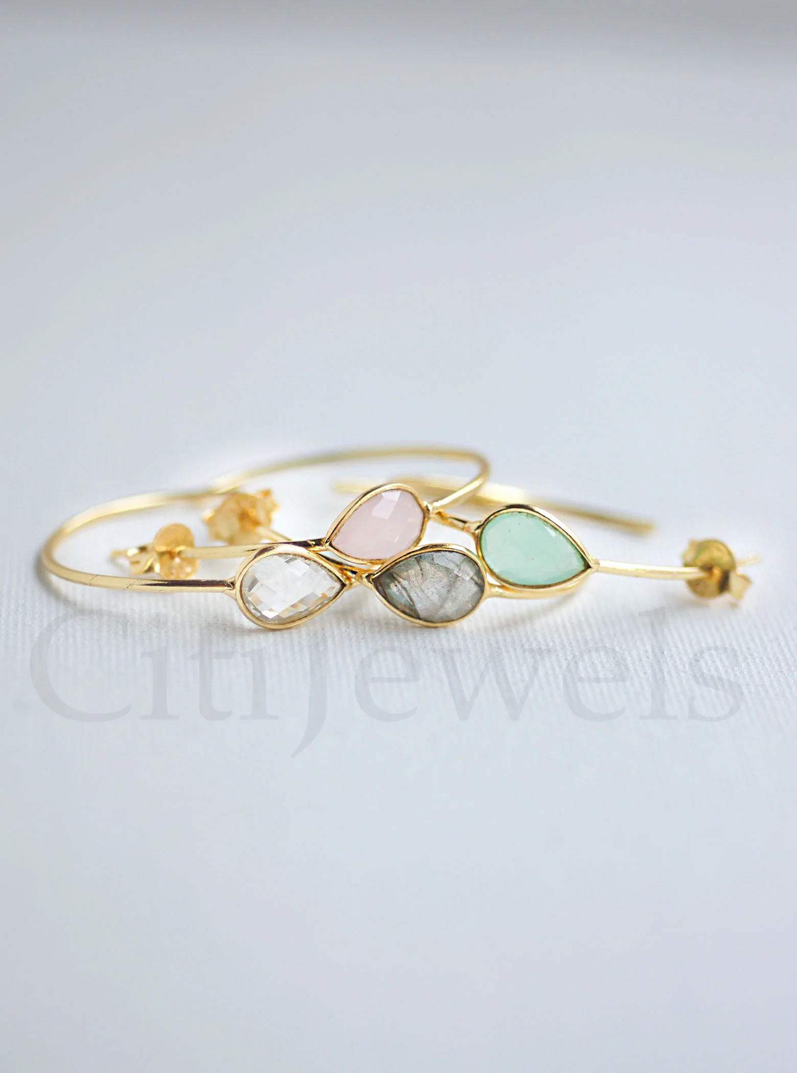 35MM gold vermeil hoop with single stone clear stone or moonstone available . moonstone or clear quartz are the two available pairs