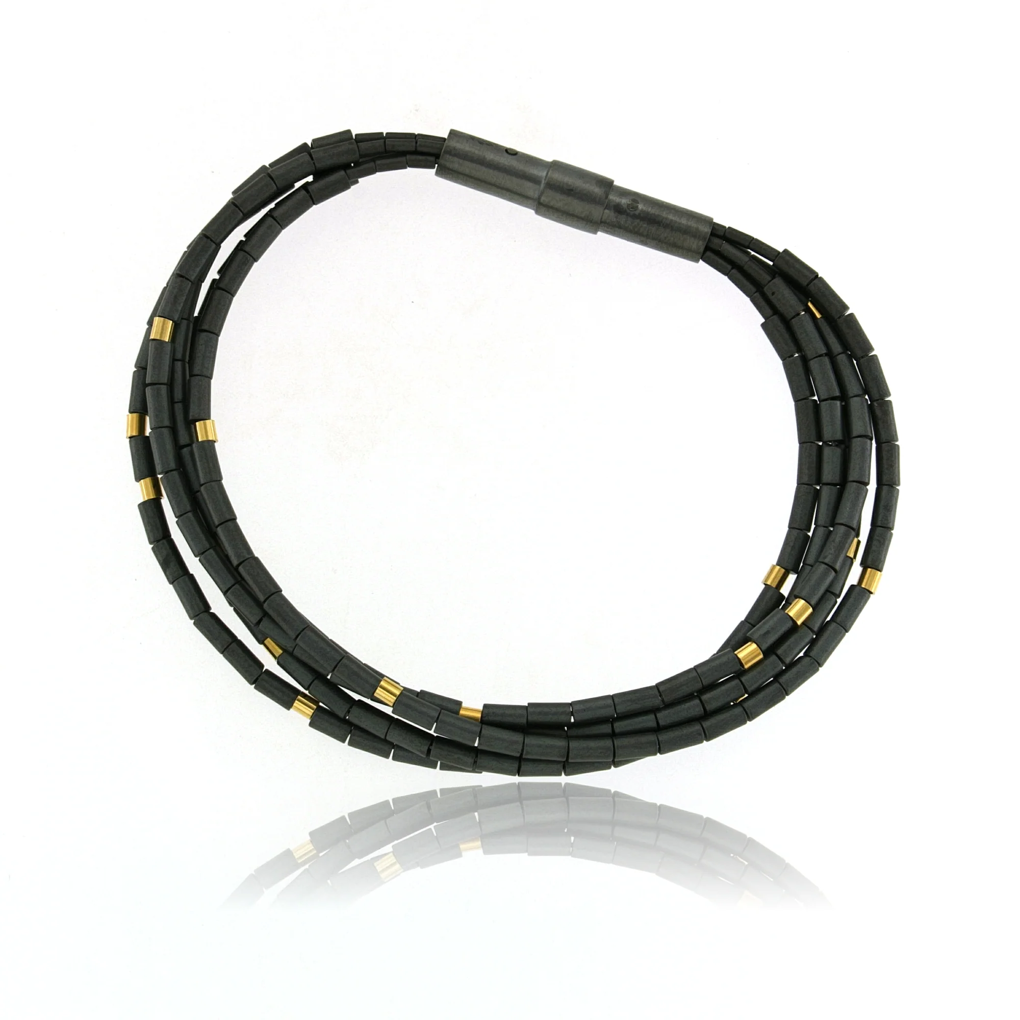 BRACELET 5 STRANDS MATTE HEMATITE BEADS, SILVER GOLD VERMEIL SMALL ELEMENTS, 7.75″