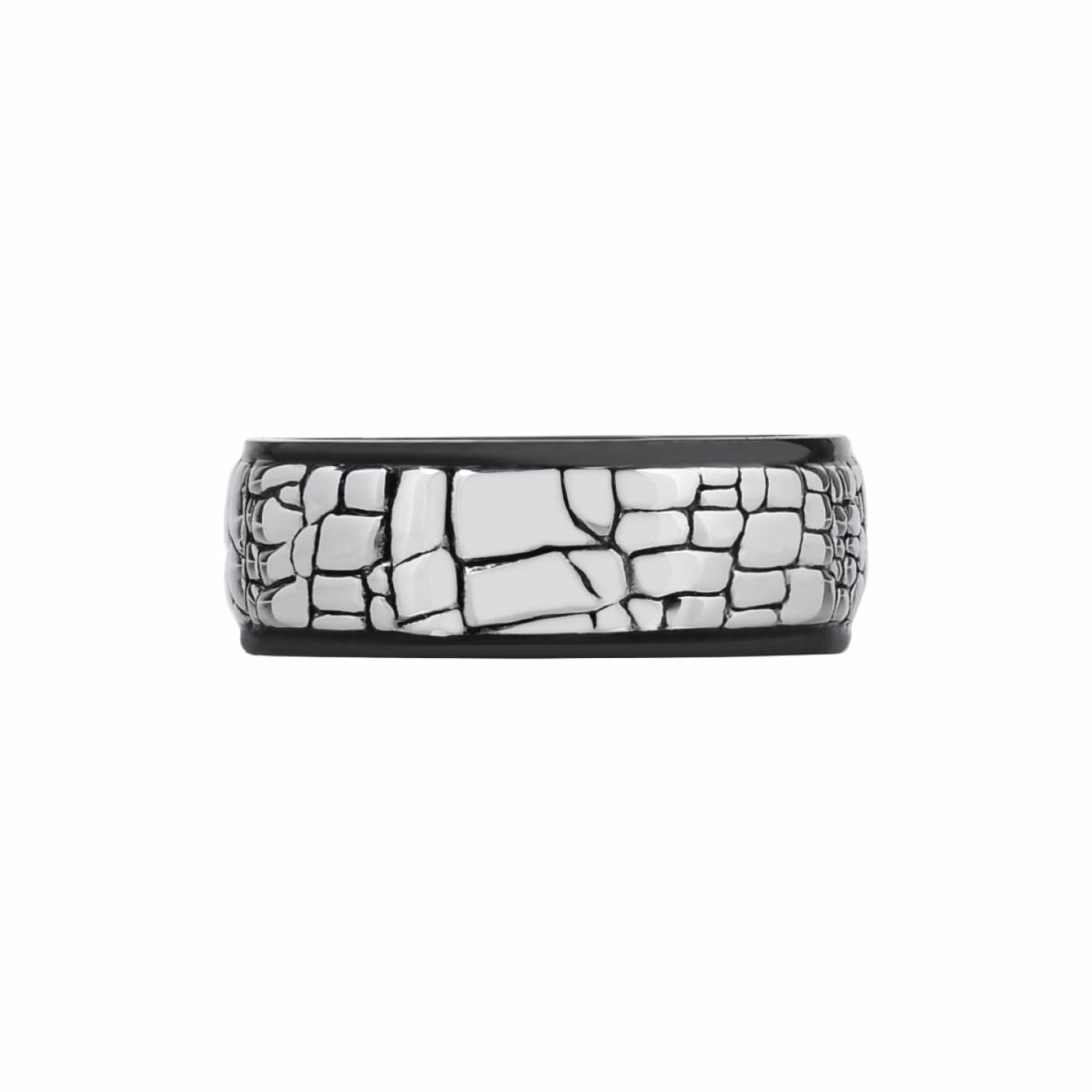 7mm TEXTURED STAINLESS STEEL AND BLACK PVD RING SIZE 13 and SIZE 14