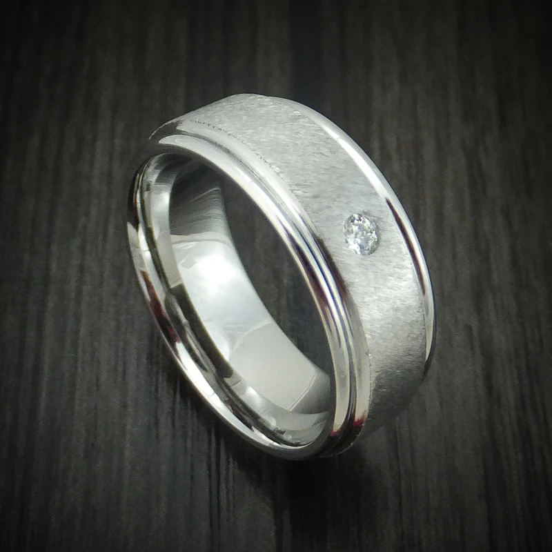 8MM WIDTH COBALT MEN’S RING WITH MATTE FINISH CENTER AND HIGH POLISH RIDGES SIZE 11 ONLY (CANNOT BE SIZED) WITH .03ct DIAMOND