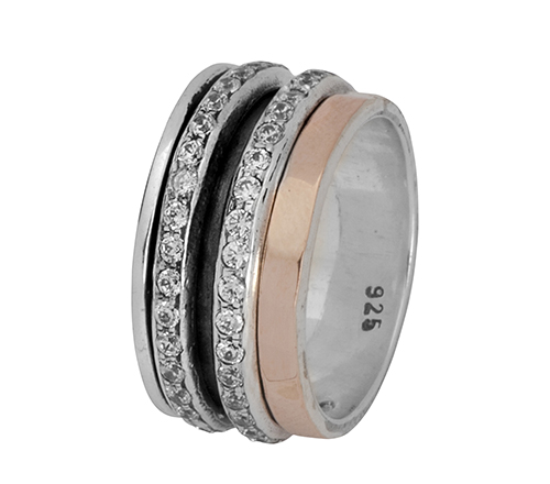 925 SILVER & 9K ROSE GOLD SPINNER RING SET WITH CZ