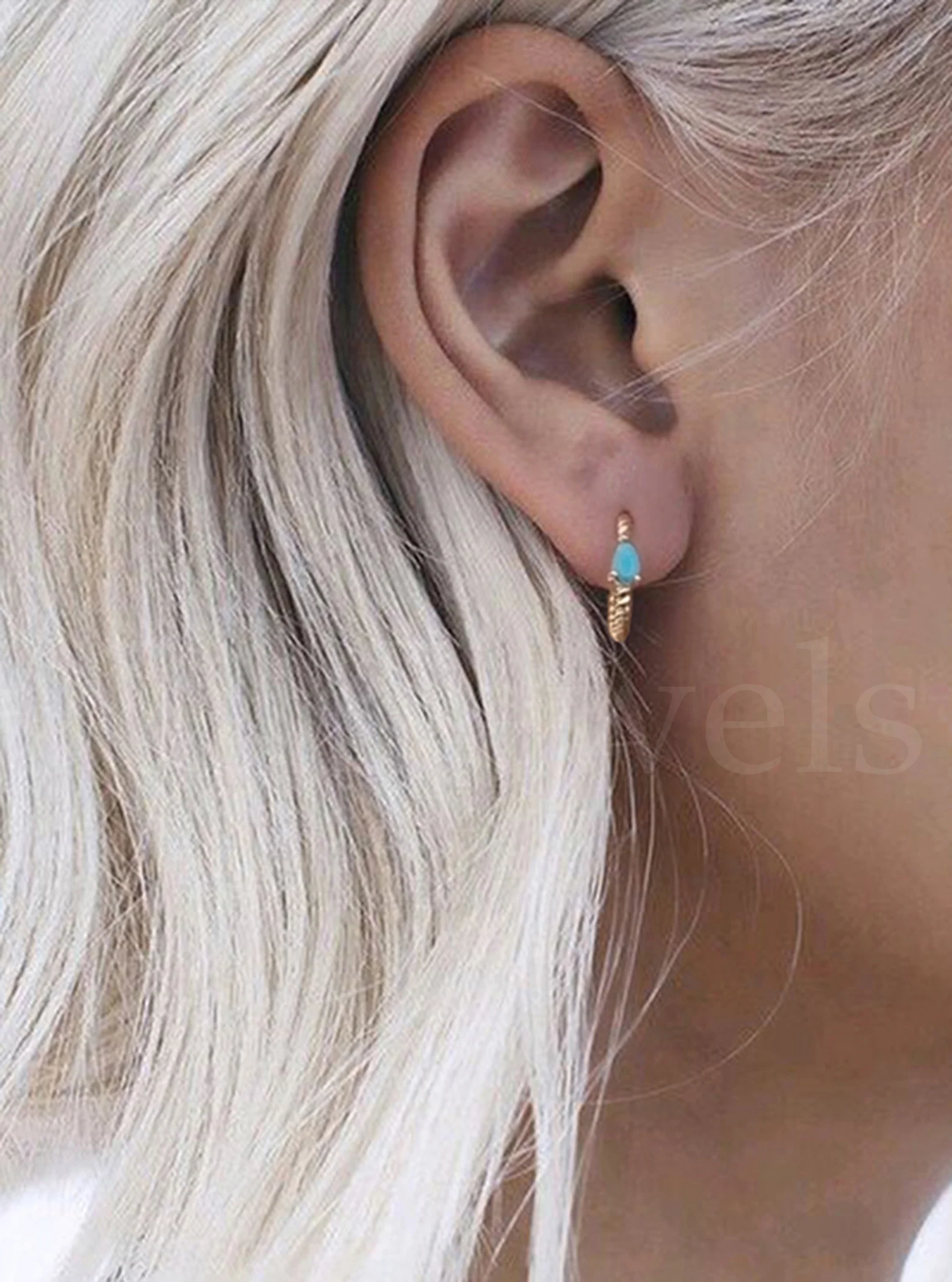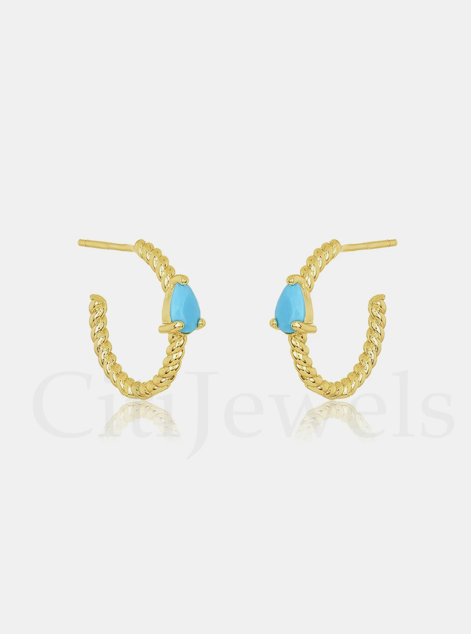 Gold Vermeil Turquoise Retro Chain Twist Earring Hoops