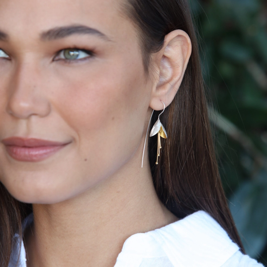 Sterling and vermeil earrings are handmade using fine quality sterling and an overlay of 22k gold.