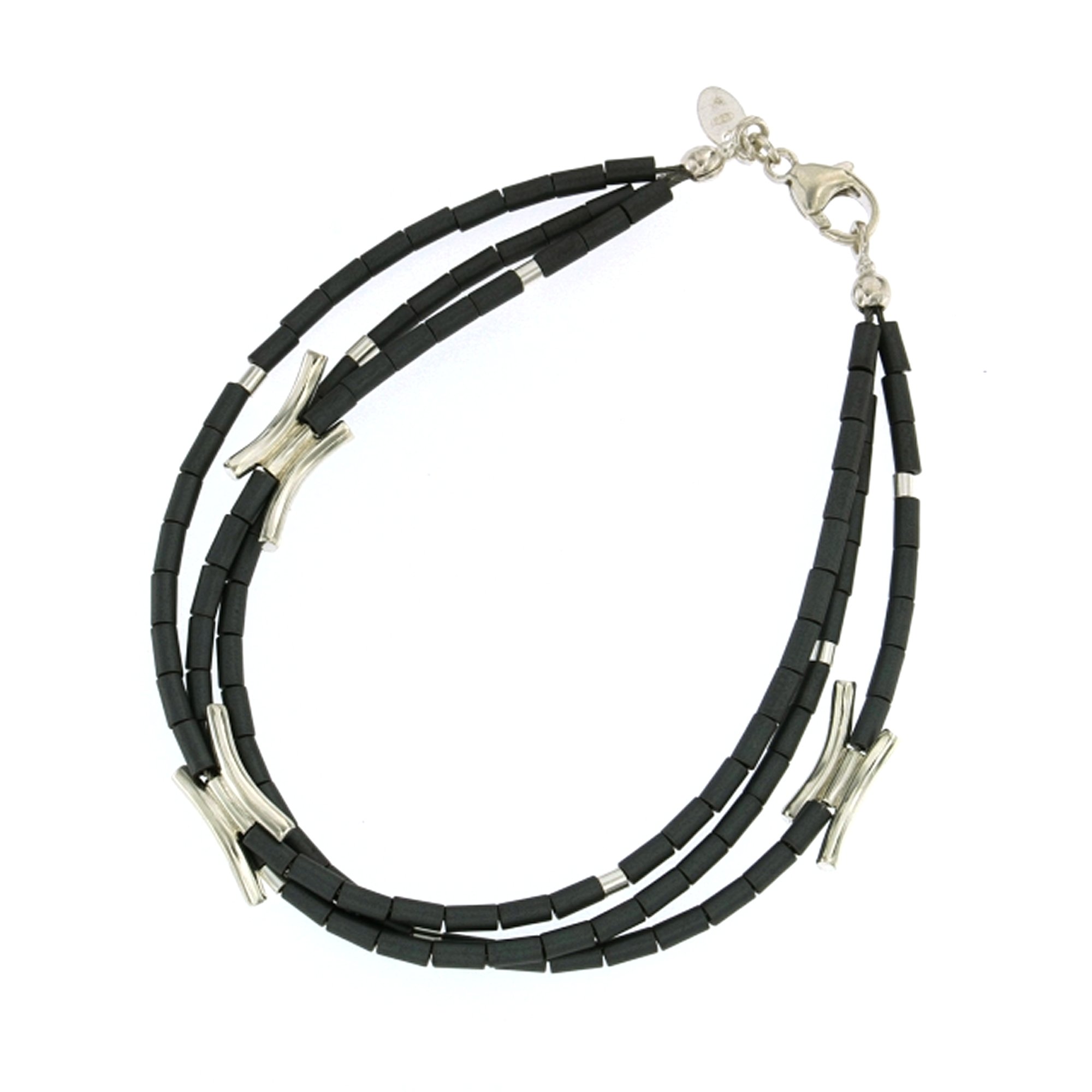 BRACELET 3 STRANDS HEMATITE BEADS, SILVER OR GOLD, 7.5″