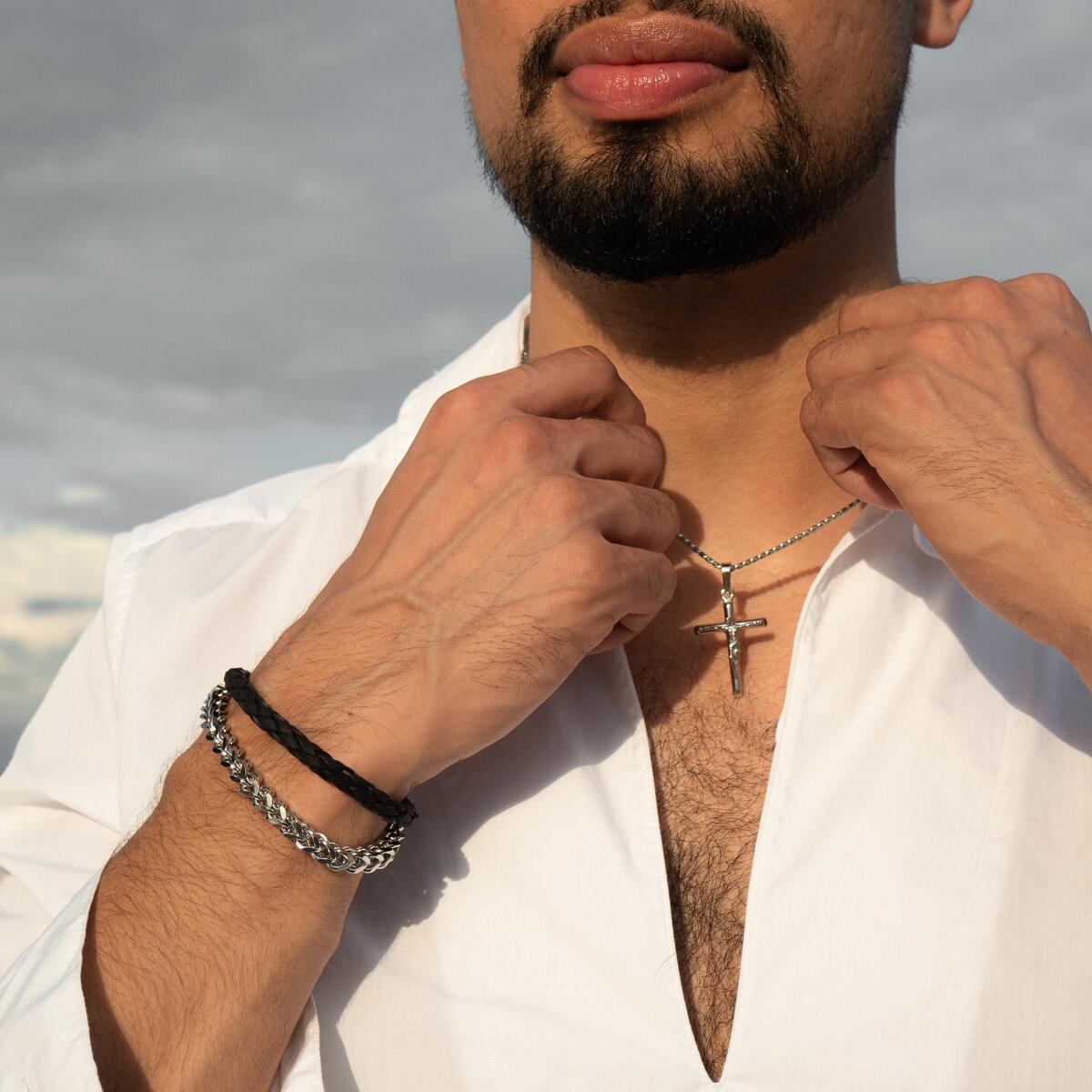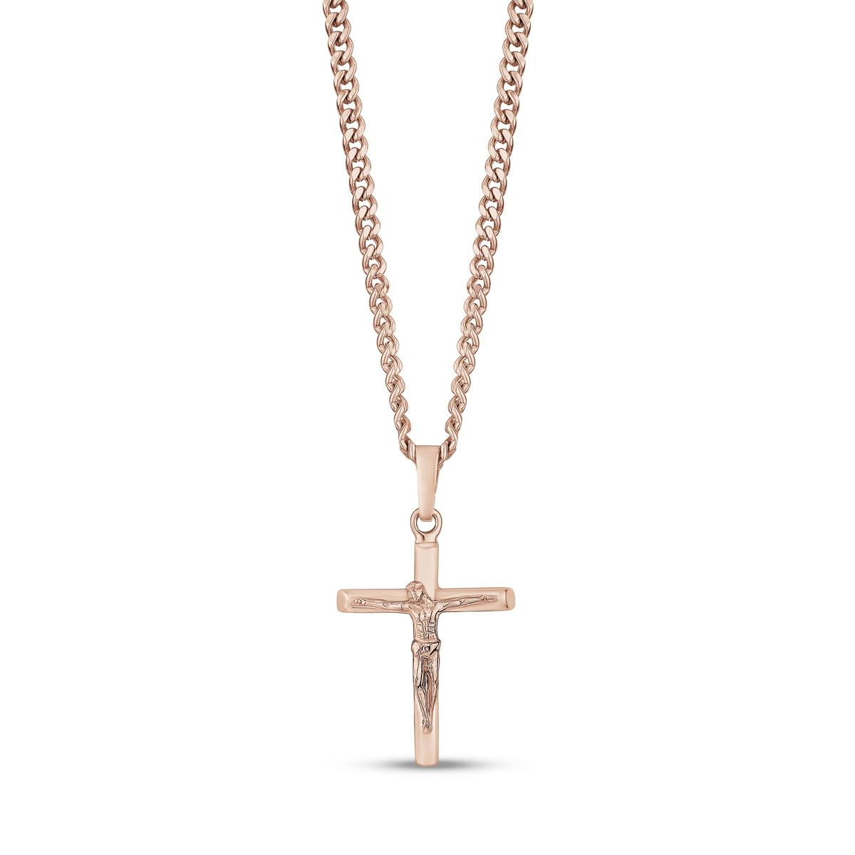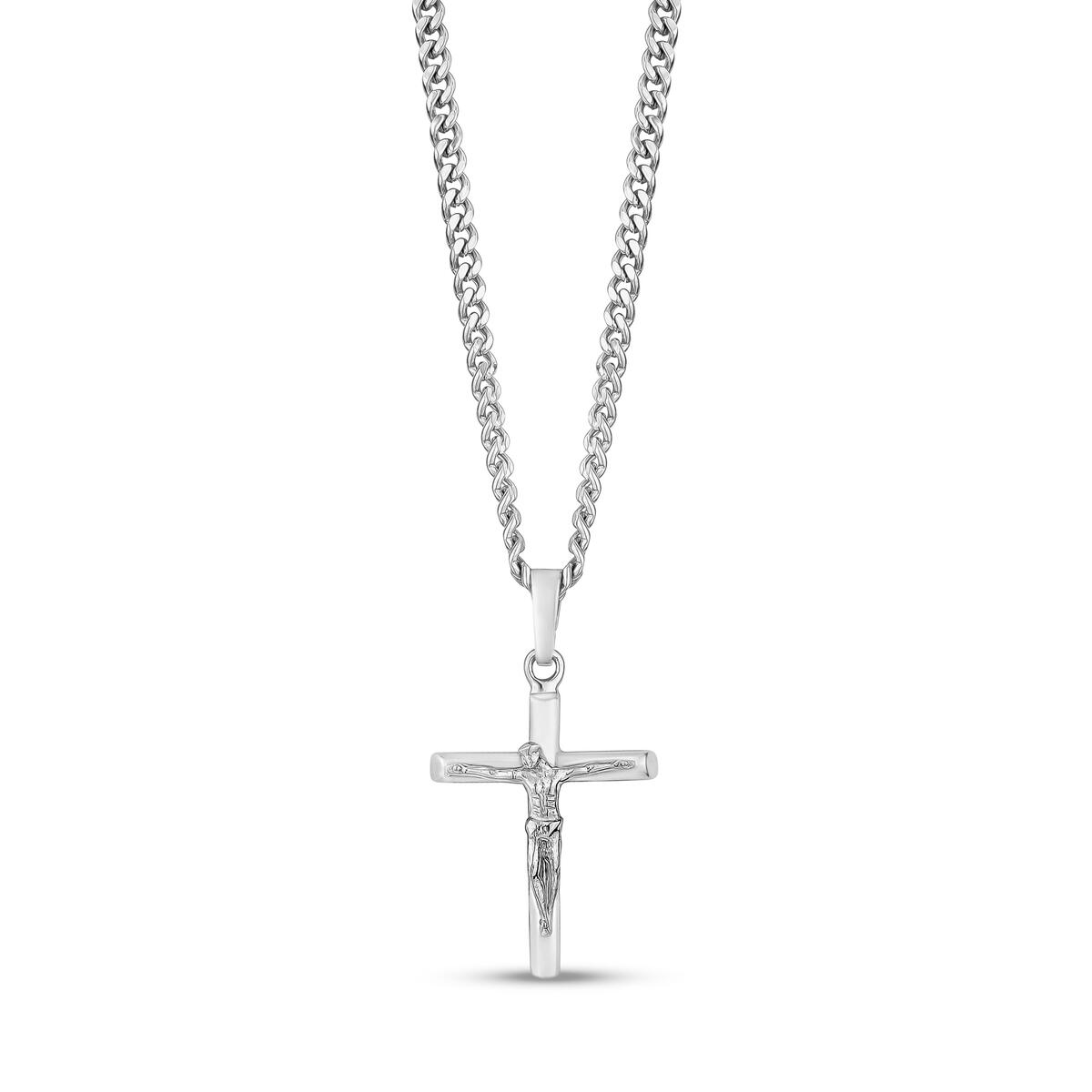 CRUCIFIX CROSS PENDANT WITH CHAIN AVAILABLE WITH 20″ or 24″ CHAIN. ALSO AVAILABLE IN ALL STAINLESS SILVER, ROSE GOLD, YELLOW GOLD or OXIDATED BLACK