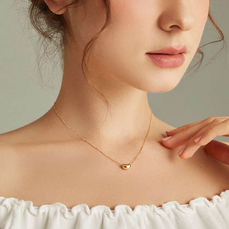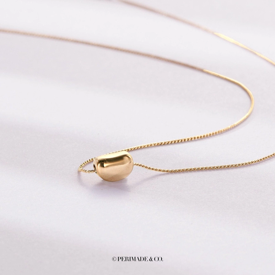 Cute Gold Acacia Bean Necklace in 925 Sterling Silver, Steel