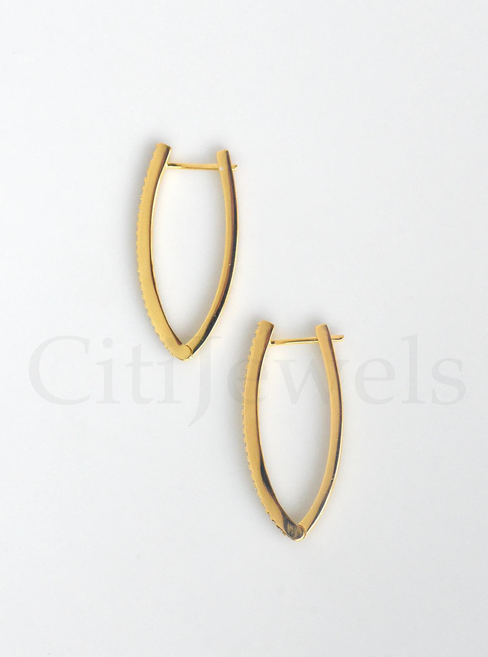 CZ Long V-shaped Huggie Style Hoop Earrings
