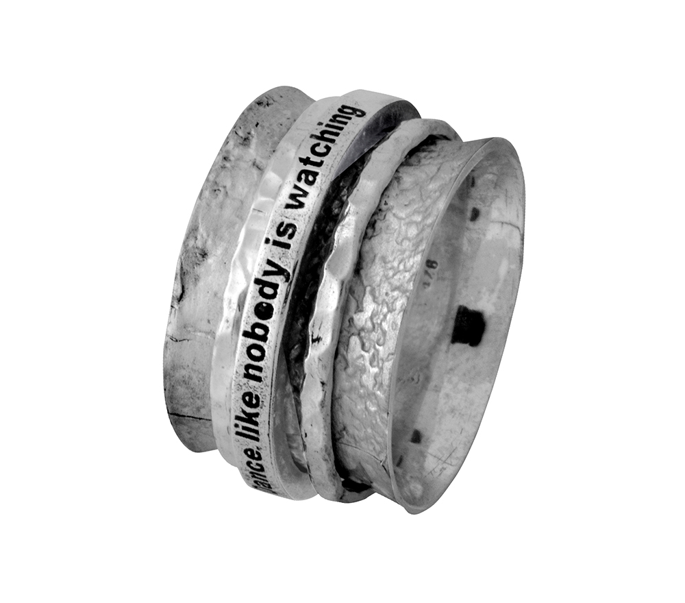 Sterling Silver Spinner Ring with the saying “Dance Like No One Is Watching”