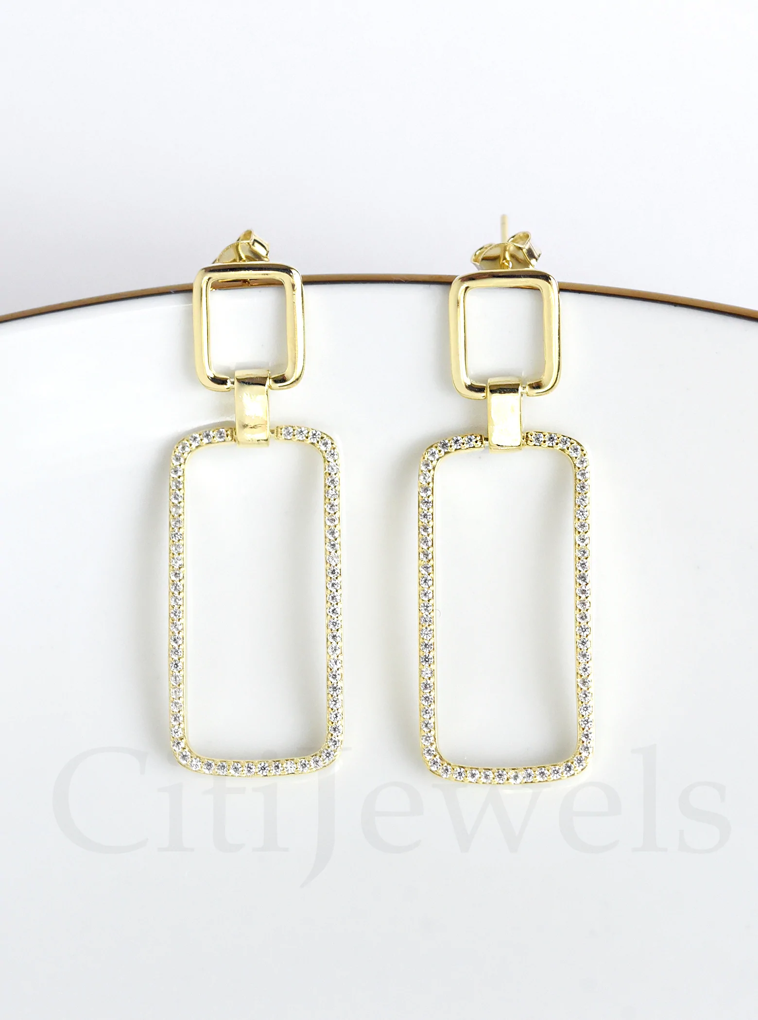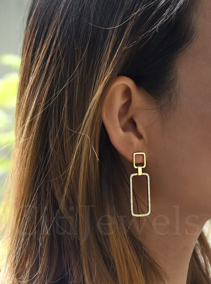 DOUBLE RECTANGLE CZ EARRINGS GOLD VERMEIL
