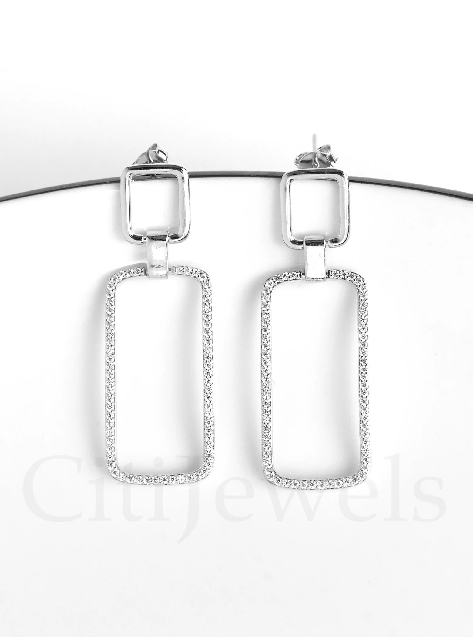 DOUBLE RECTANGLE CZ EARRINGS AVAILABLE IN STERLING SILVER OR 14K YELLOW GOLD VERMEIL