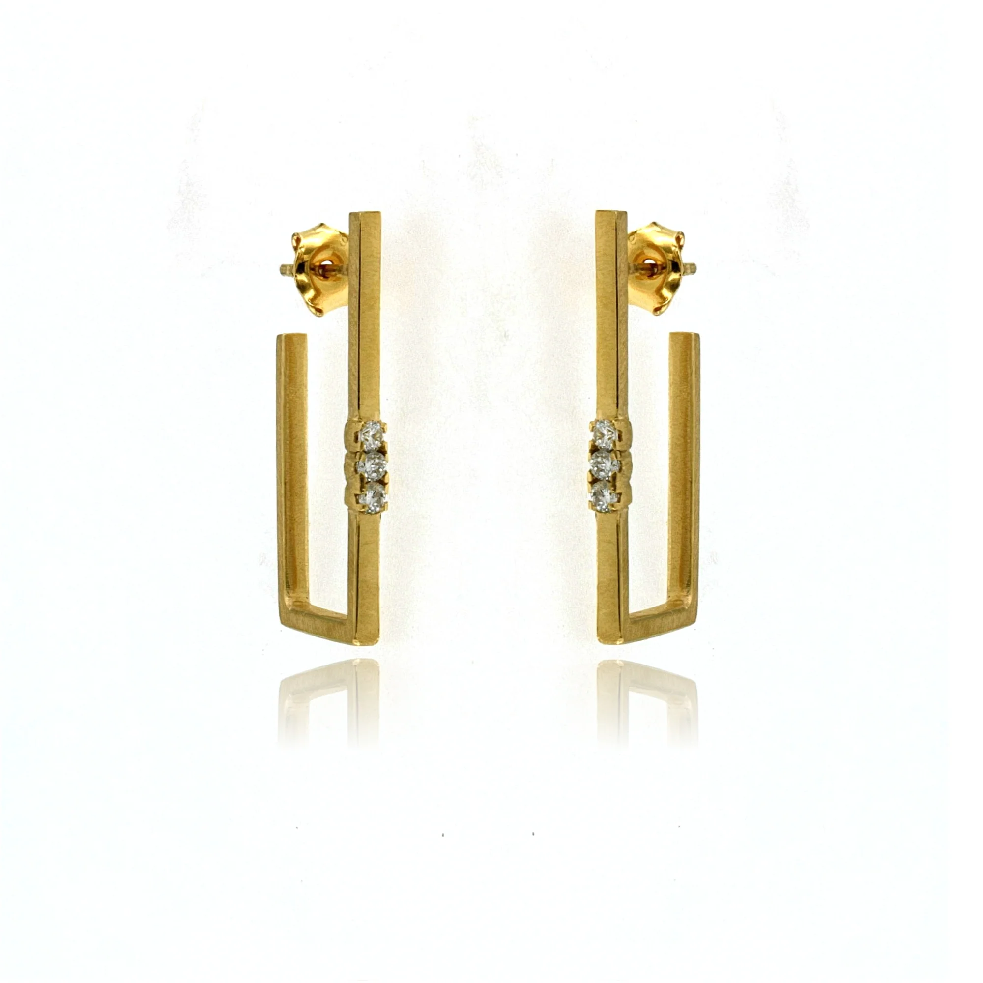 EARRINGS SILVER 24K GOLD PLATED, CZ, RECTANGLE WITH 3 CLEAR CZs 2mm, POST, 1″