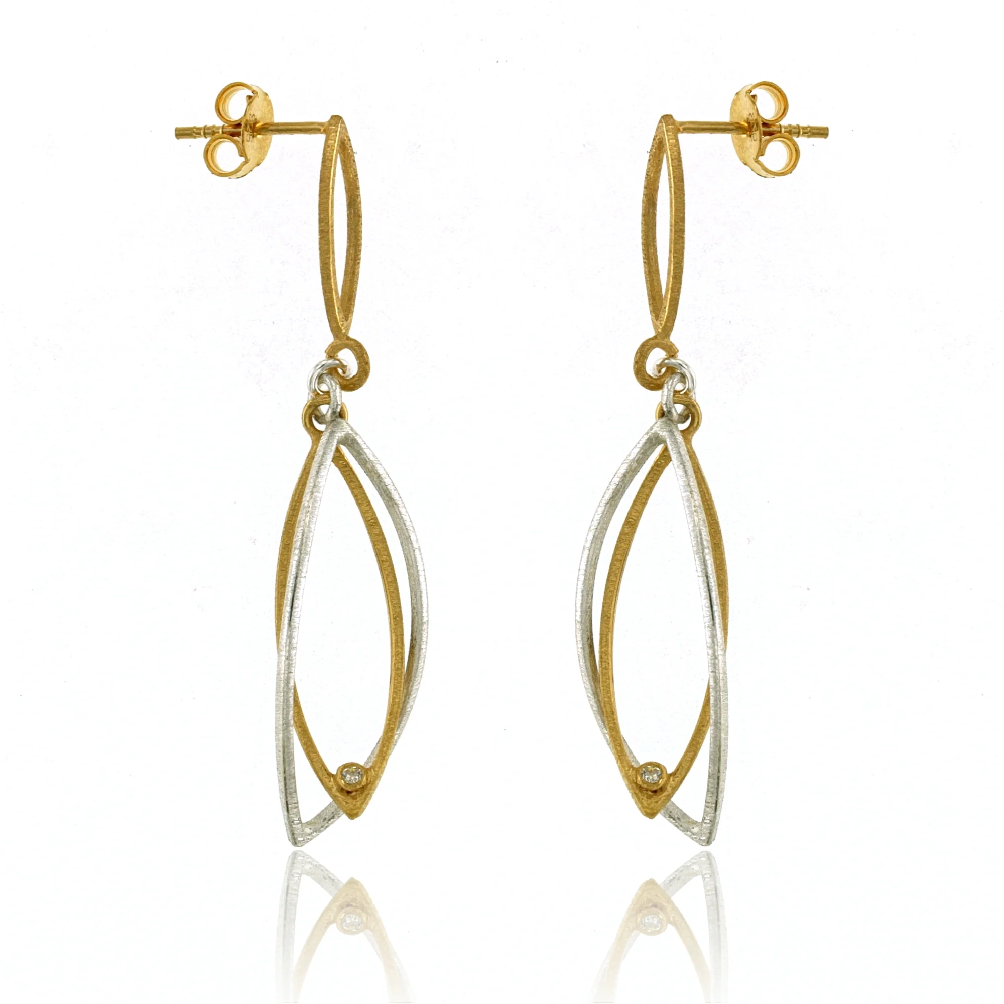 EARRINGS SILVER AND GOLD VERMEIL 2 MARQUISE OUTLINES DROP, POST, 2″