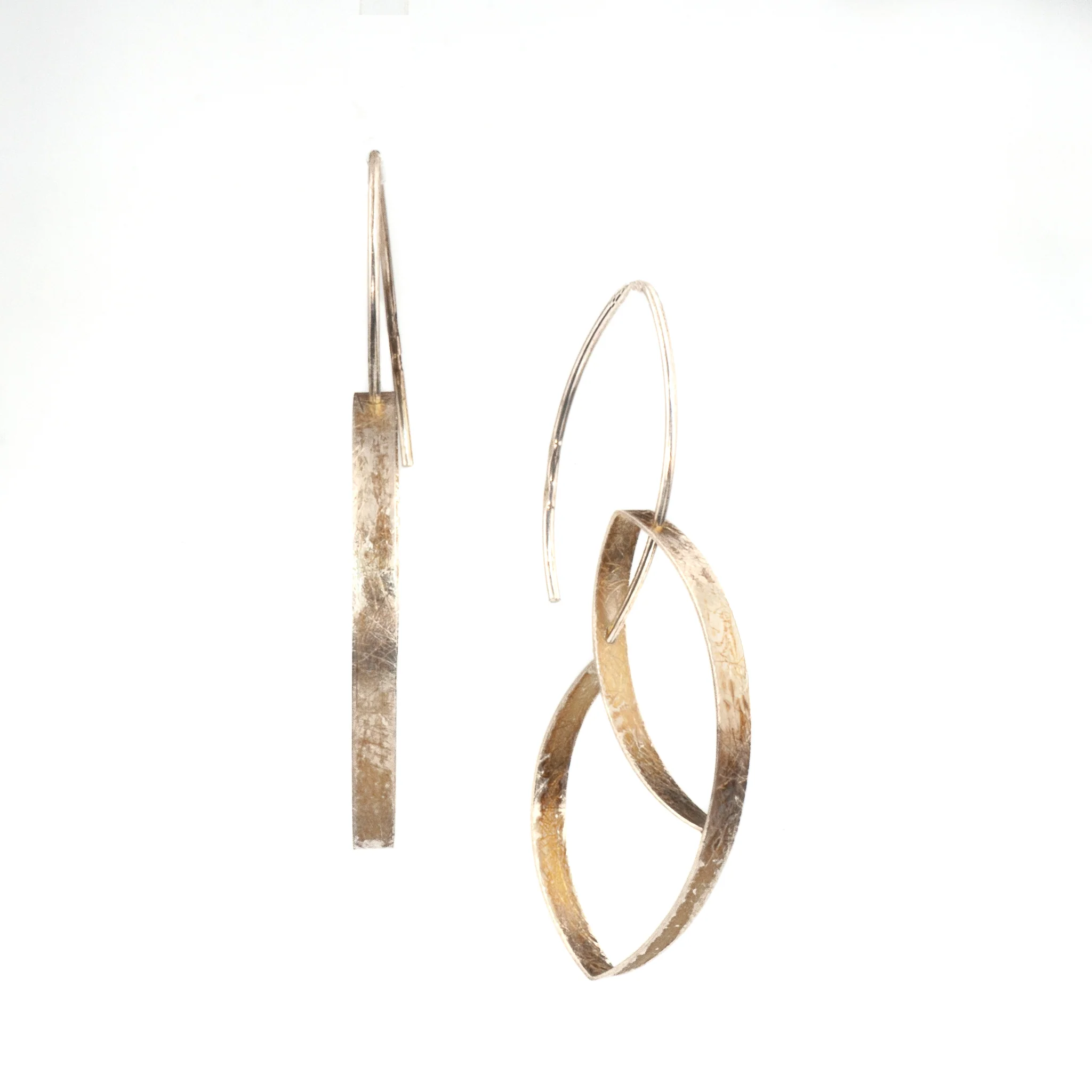 EARRINGS SILVER GOLD PLATED DOUBLE ECLIPSE, WIRE, 2 1/8″