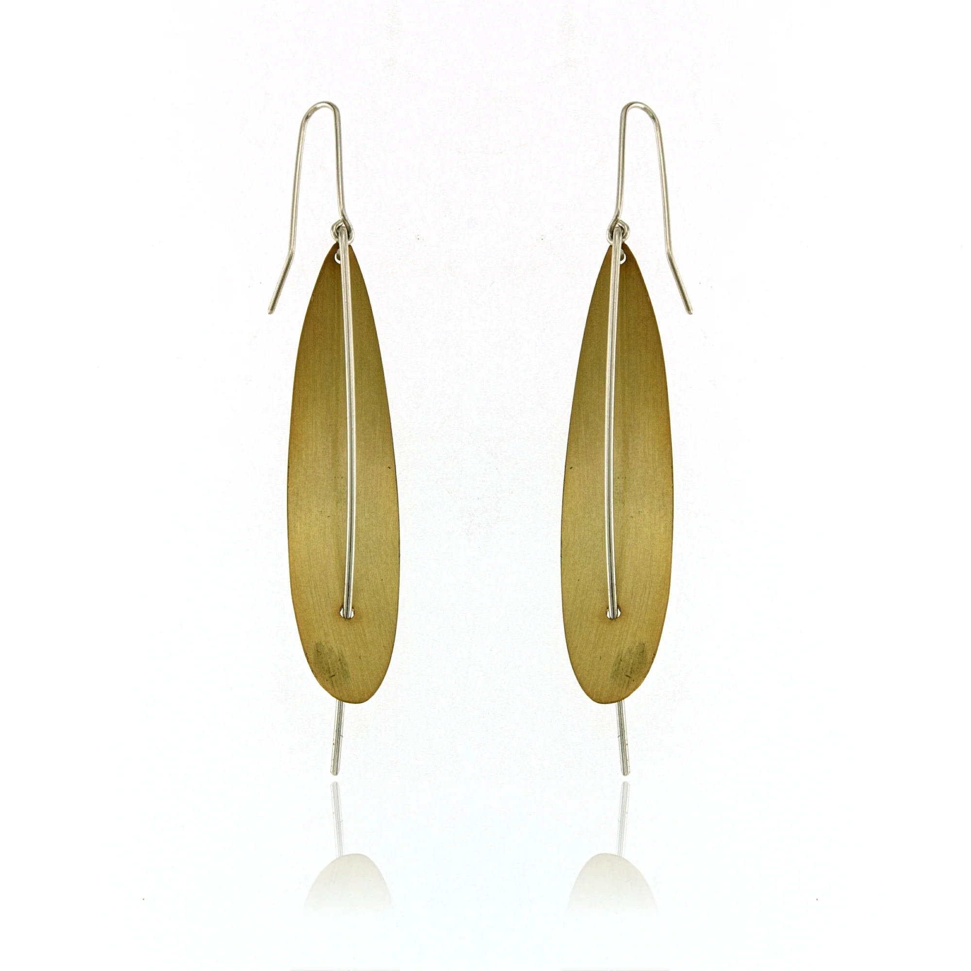 EARRINGS SILVER GOLD VERMEIL LEAF WITH SILVER WIRE, SILVER WIRE, TOTAL 3″