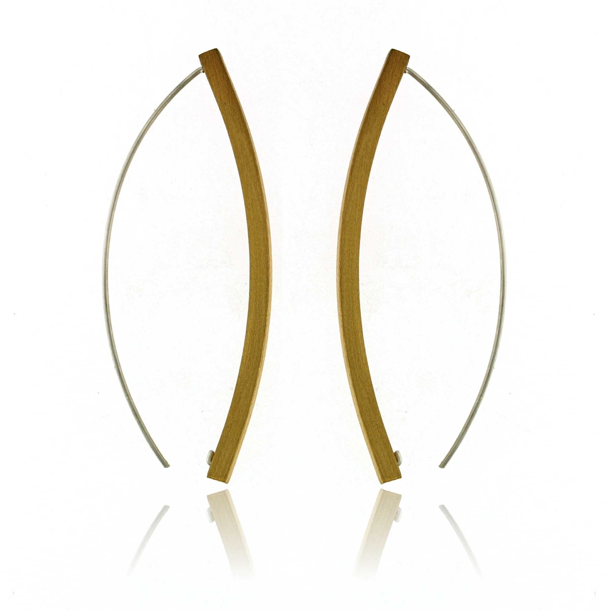 EARRINGS SILVER GOLD VERMEIL MATTE FINISH, LONG CURVED BAR, WIRE, 2.5″