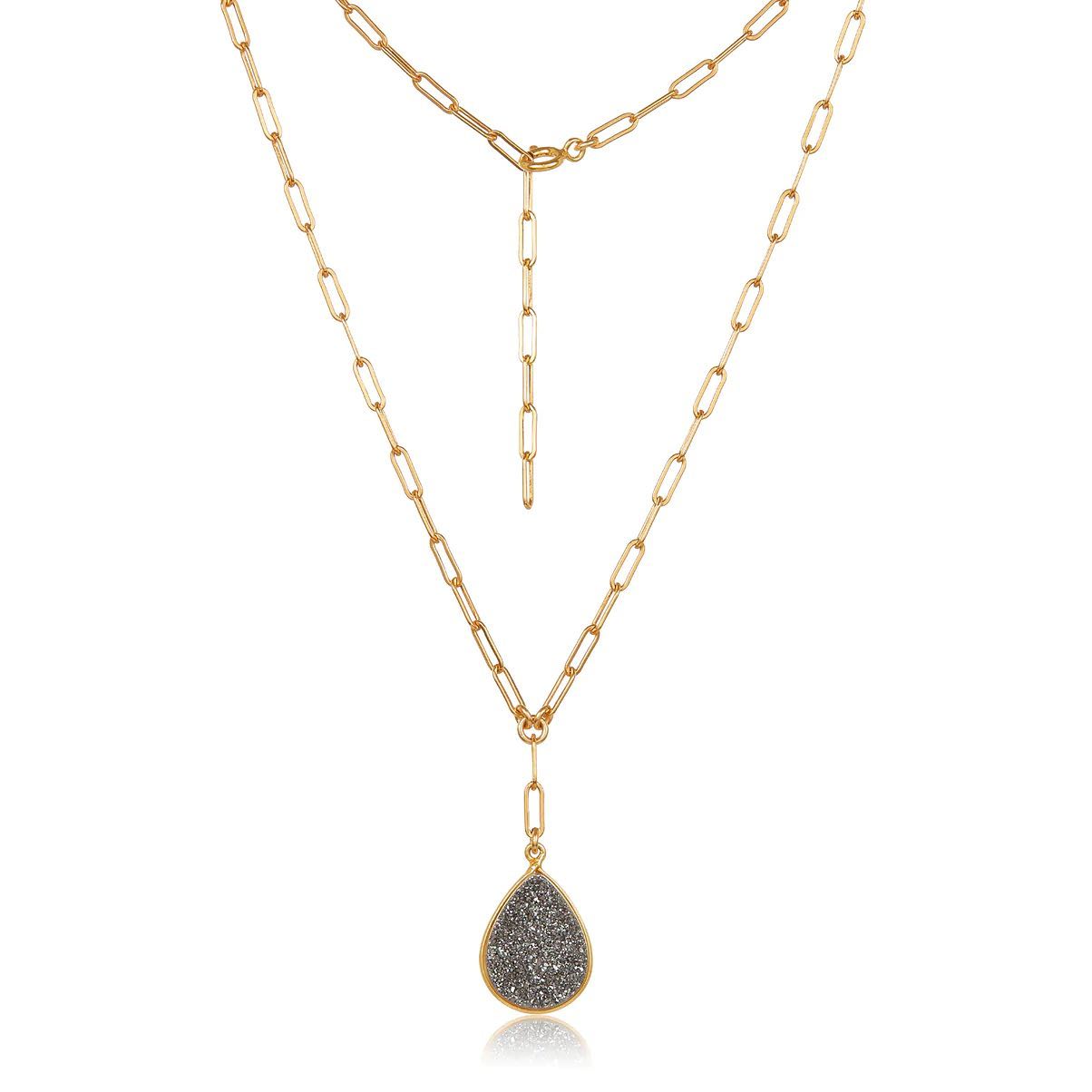 Glistening Grey Druzy Quartz Paperclip Necklace