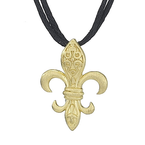 GOLD VERMEIL FLEUR DE LIS ON SILK CORD 17″ IN LENGTH