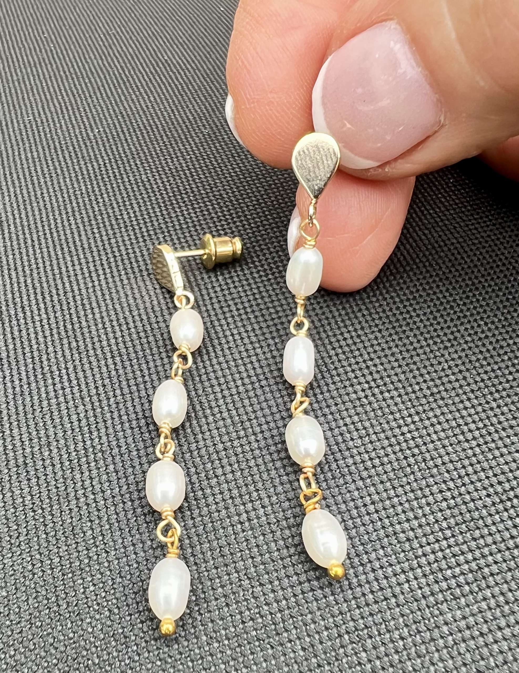 Freshwater Pearls Dangle earrings measure 2.25″ in length. Genuine freshwater Pearls on post style earring