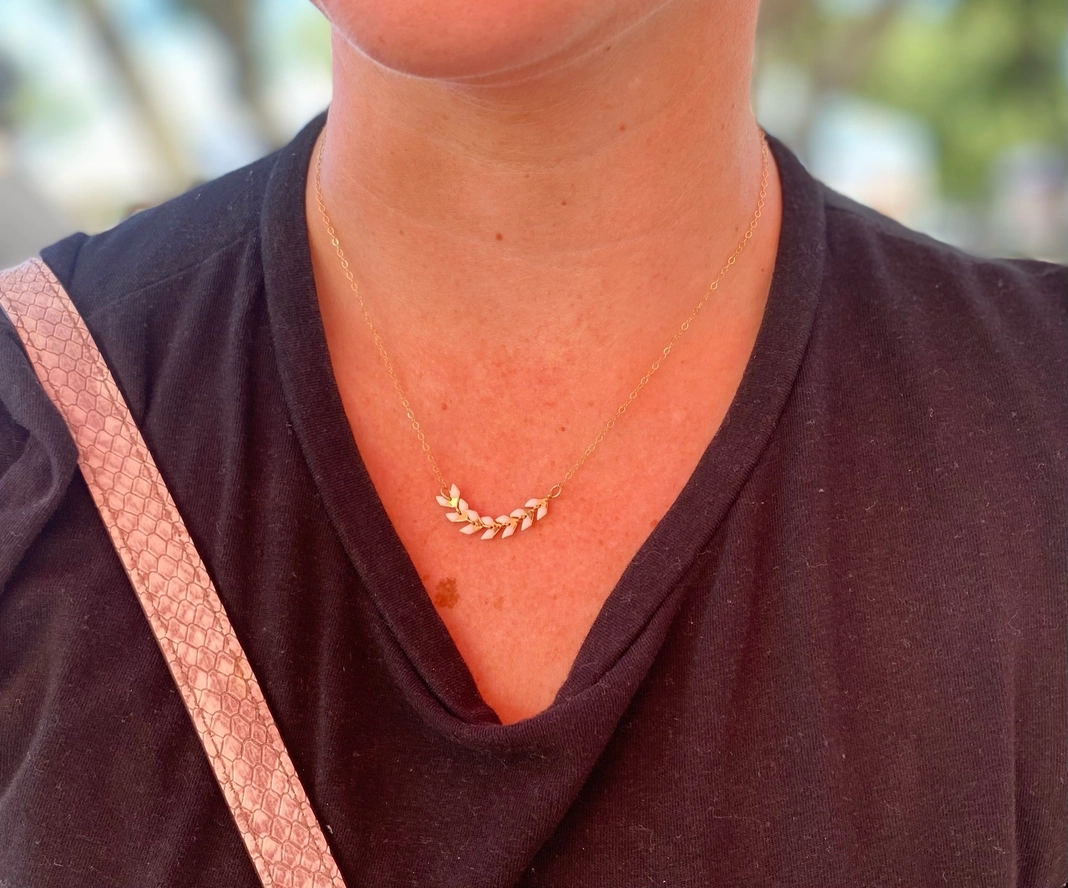 16″-18” 14K gold filled chain. Gold filled white ivy.