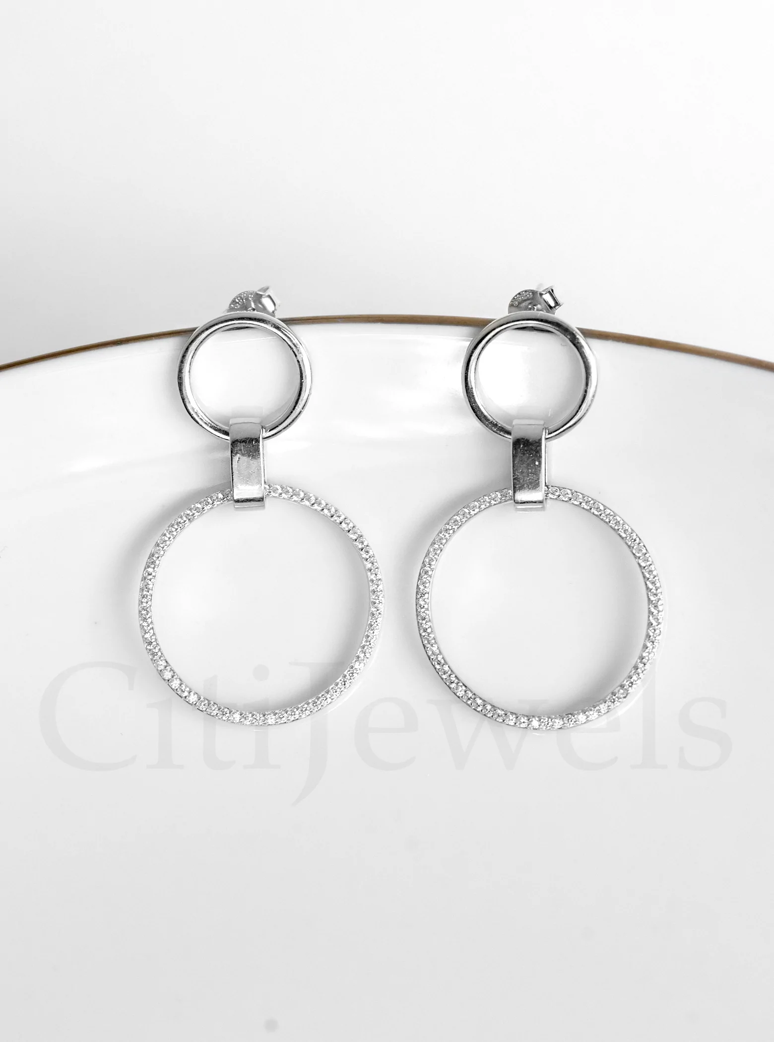 Hoop Double Round Dangling CZ Earrings