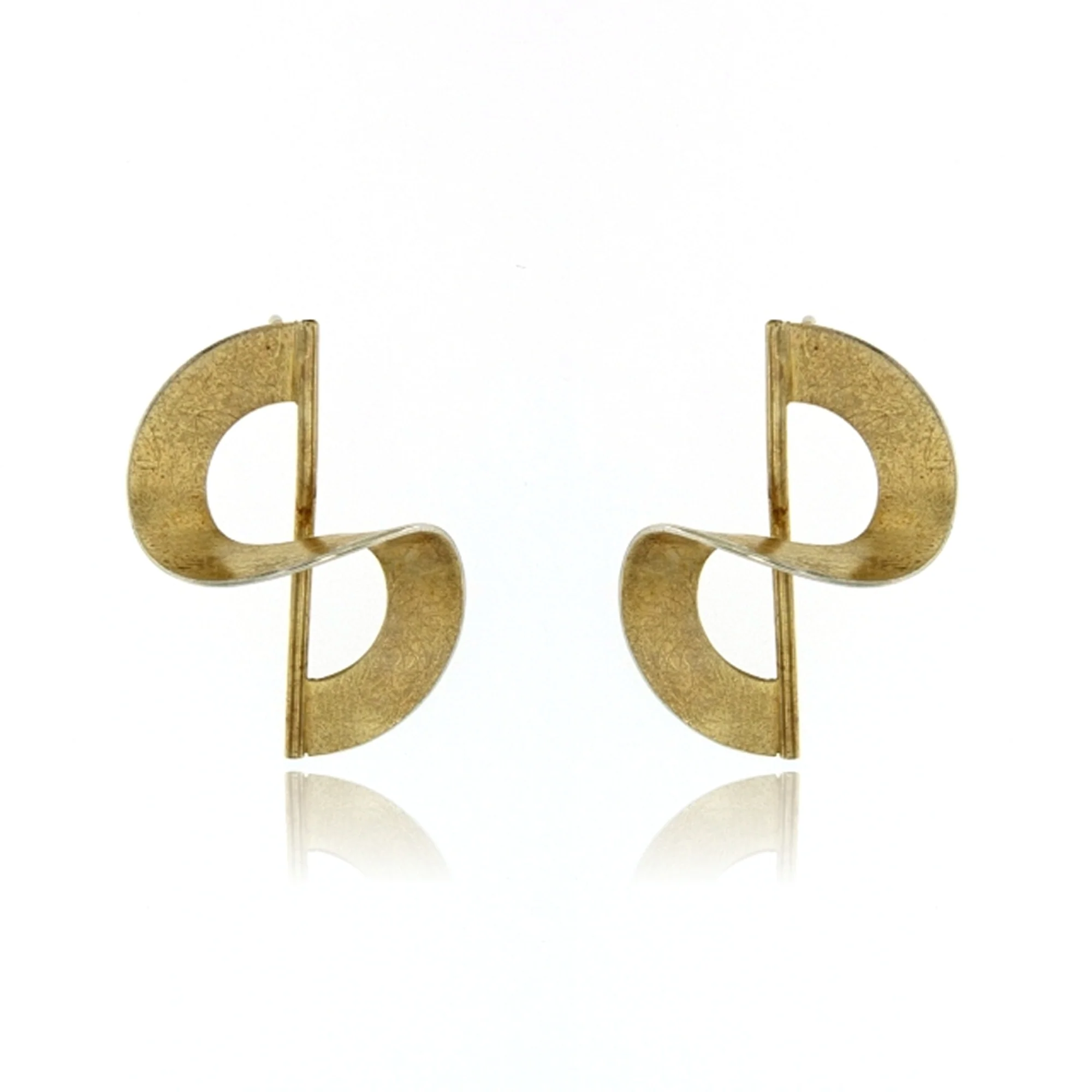 EARRINGS “LITTLE TWISTED” SILVER GOLD VERMEIL, TWISTED GOLD RIBBON, POST, 1 1/8″