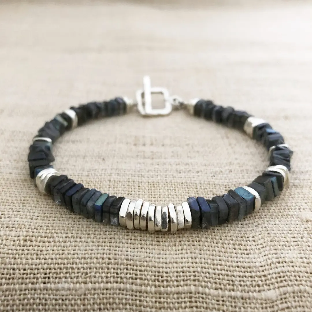 MEN’S LABRADORITE AND SILVER SQUARES BRACELET