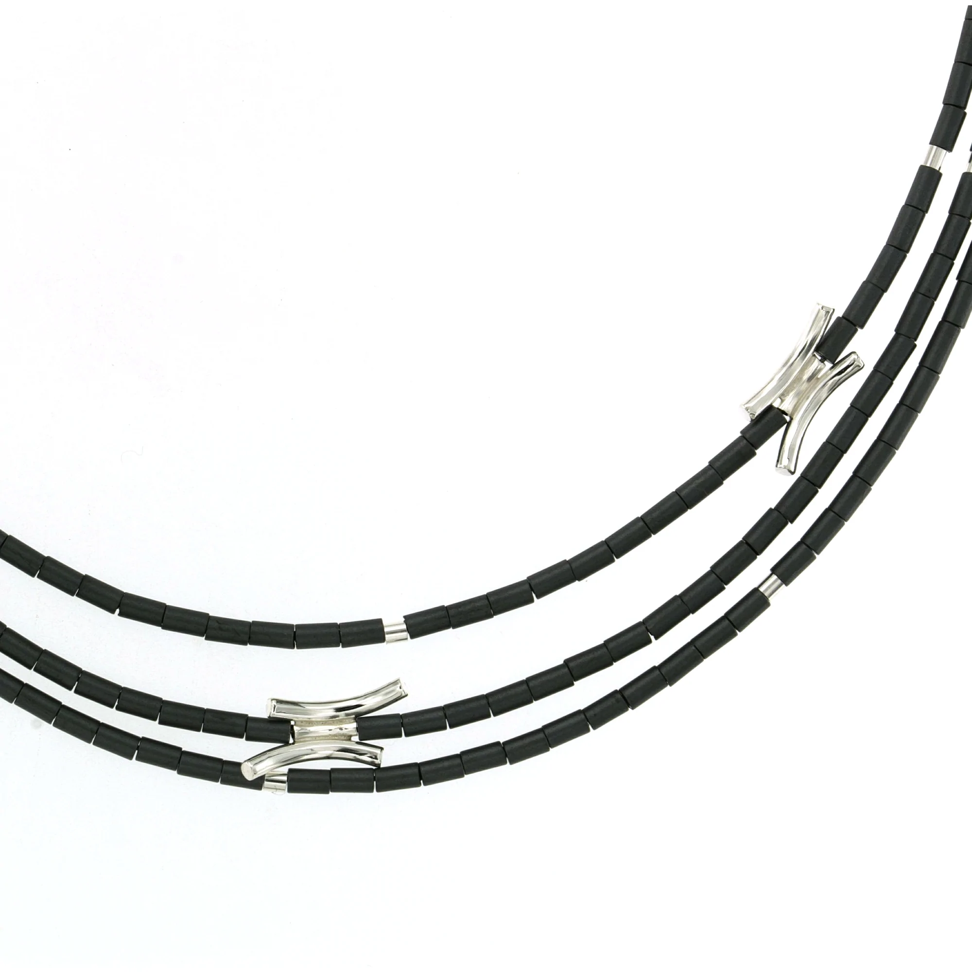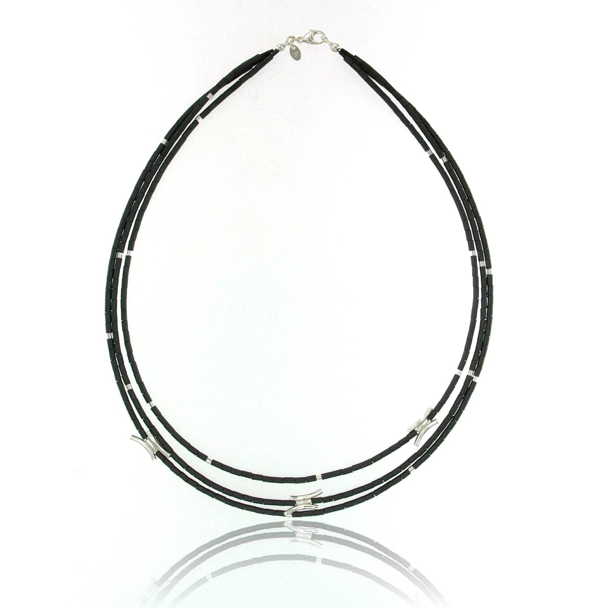 NECKLACE 3 STRANDS MATTE FINISH HEMATITE BEADS, SILVER ELEMENTS, 19″