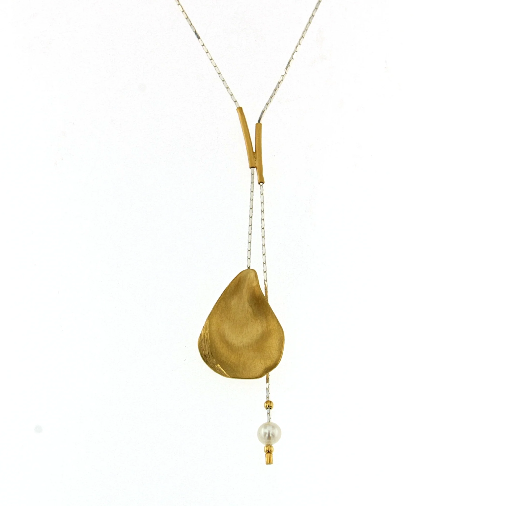 NECKLACE SILVER GOLD VERMEIL 1″ OYSTER SHELL PENDANT, WHITE FRESHWATER PEARL DROP, SILVER CHAIN 20″
