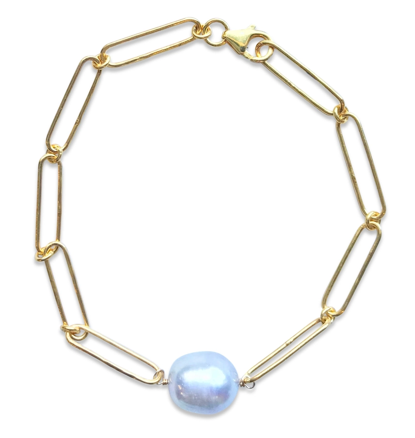 24K Vermeil Paper Clip Bracelet with beautiful white Freshwater Pearl