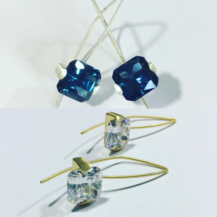 Princess cut or emerald cut stones set in Sterling Silver or 18k Gold Vermeil . Made in Warsaw Poland . These earrings are available in various stones