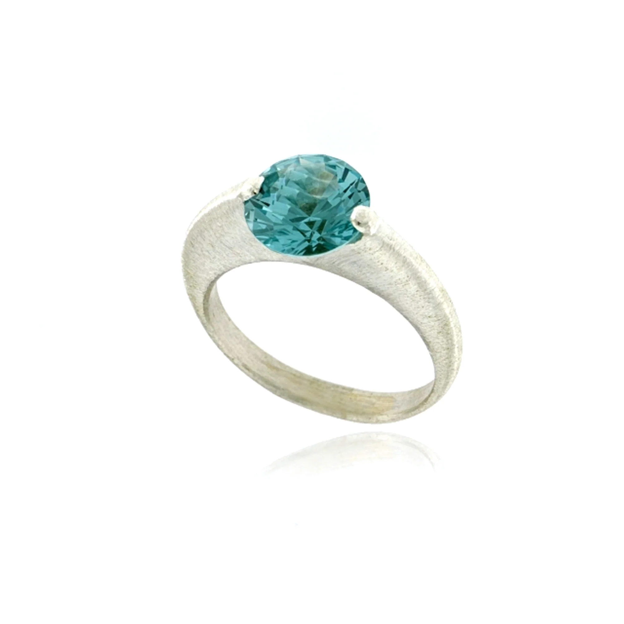 RING SILVER “GALACTIC” TALL OVAL BAND MATTE FINISH 9mm PARAIBA SHADE CREATED SPINEL SIZE 6.5 ONLY