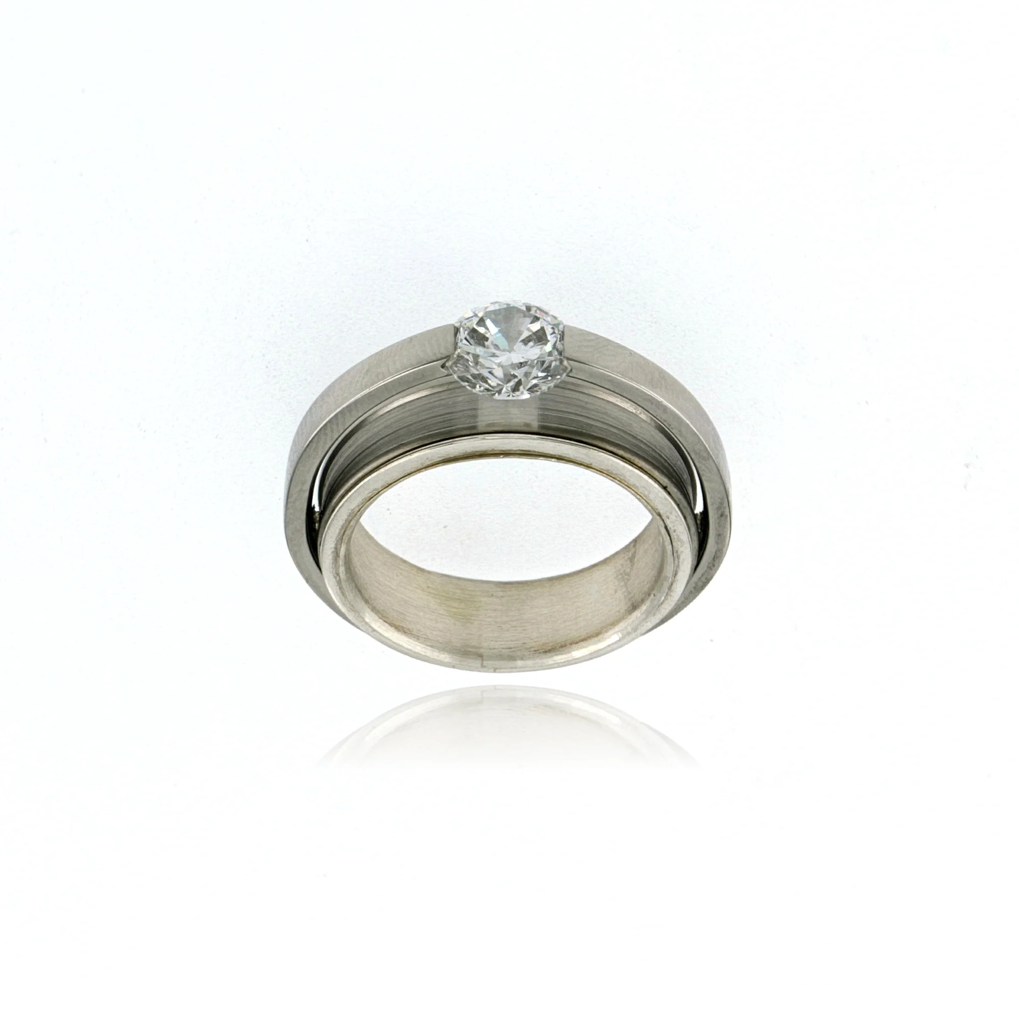 RING SILVER INSIDE & STAINLESS STEEL OUTSIDE BAND 1/4″, CLEAR CZ 7mm TENSION SET