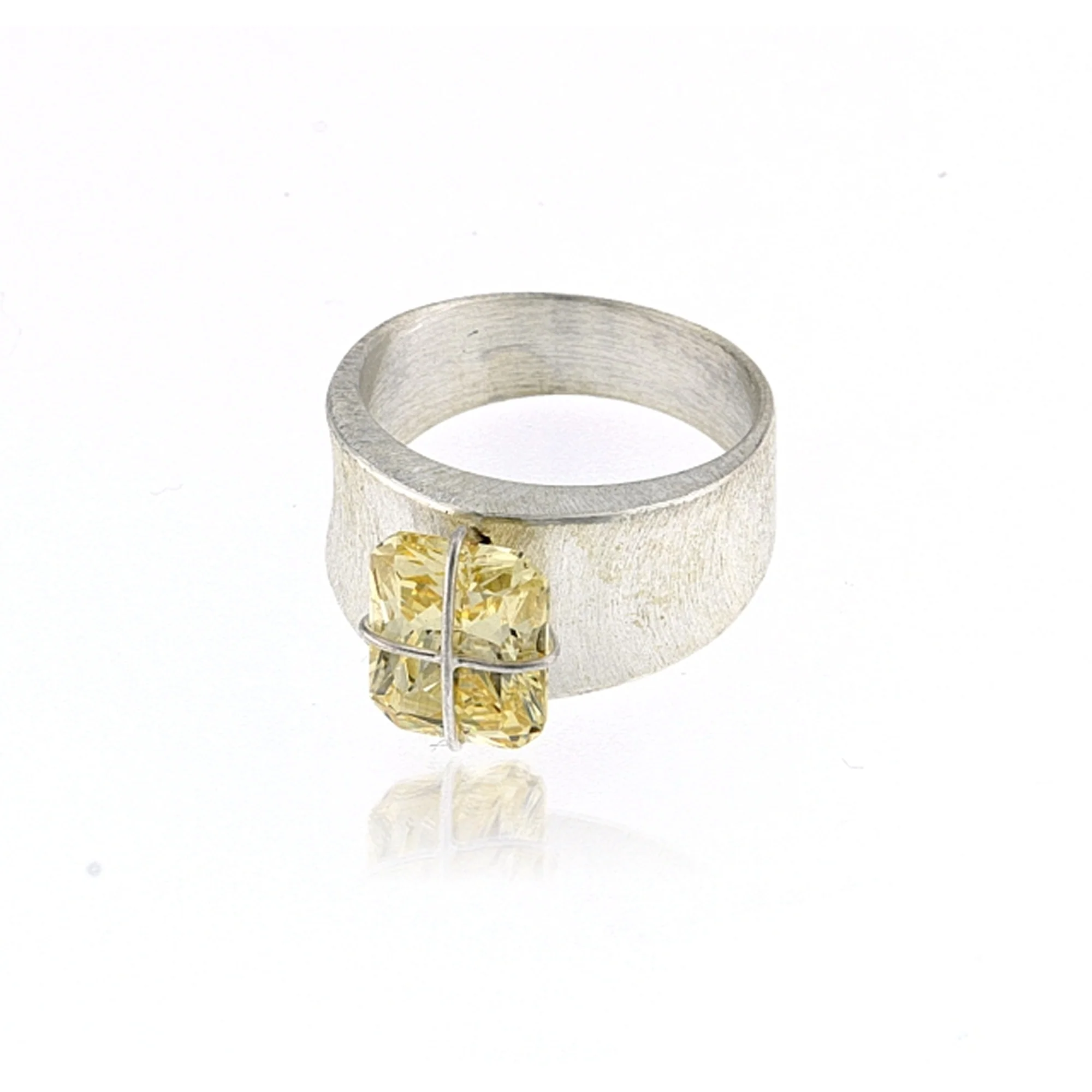 RING SILVER “PRESENT WRAP” ORIGINAL CONCAVE BAND, 10x8mm LIGHT YELLOW CZ SIZE 9.25 ONLY