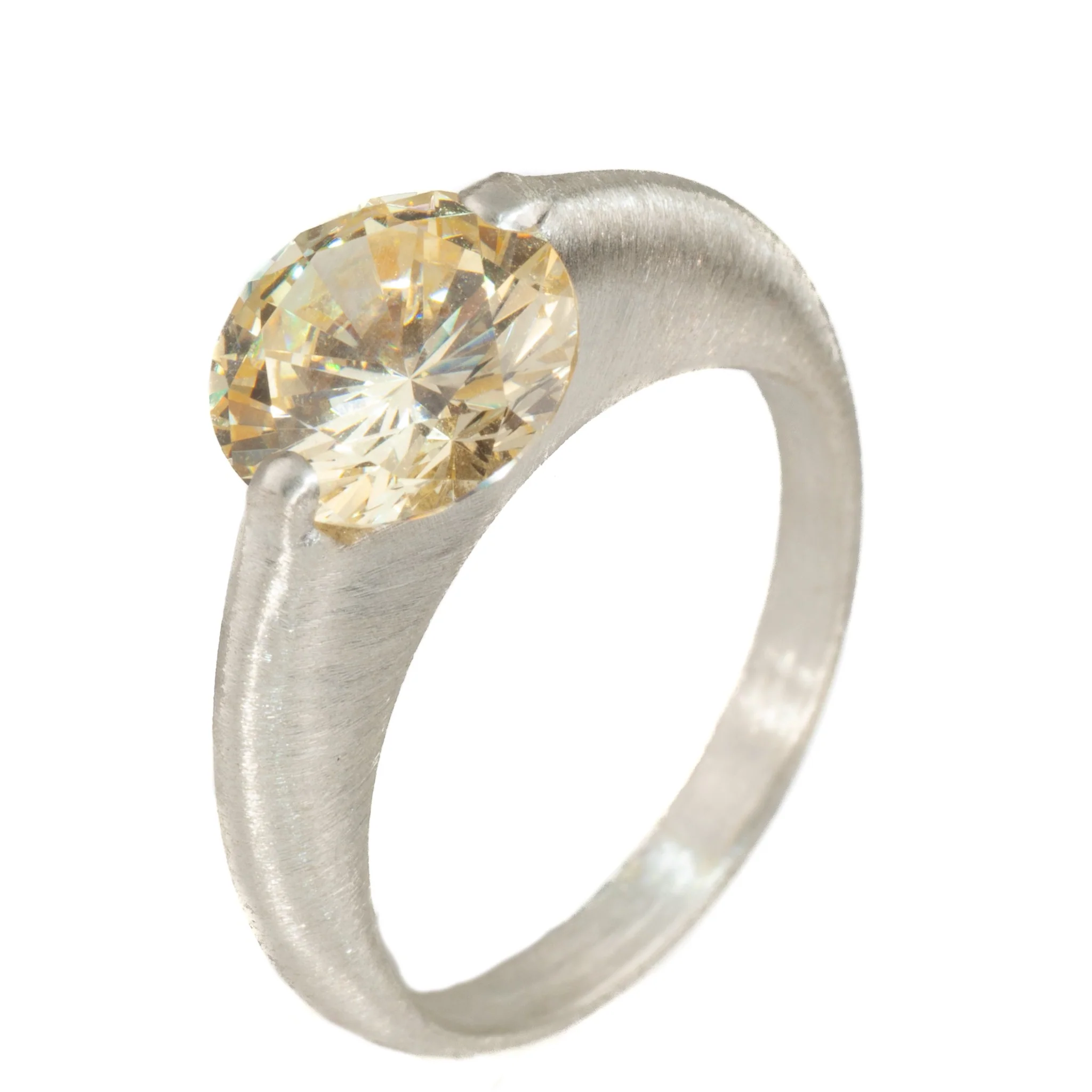 RING STERLING SILVER “GALACTIC” TALL OVAL BAND MATTE FINISH 9mm LIGHT YELLOW CZ