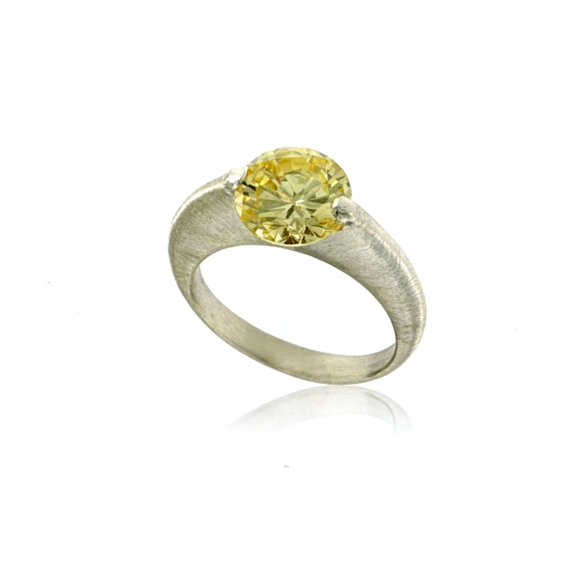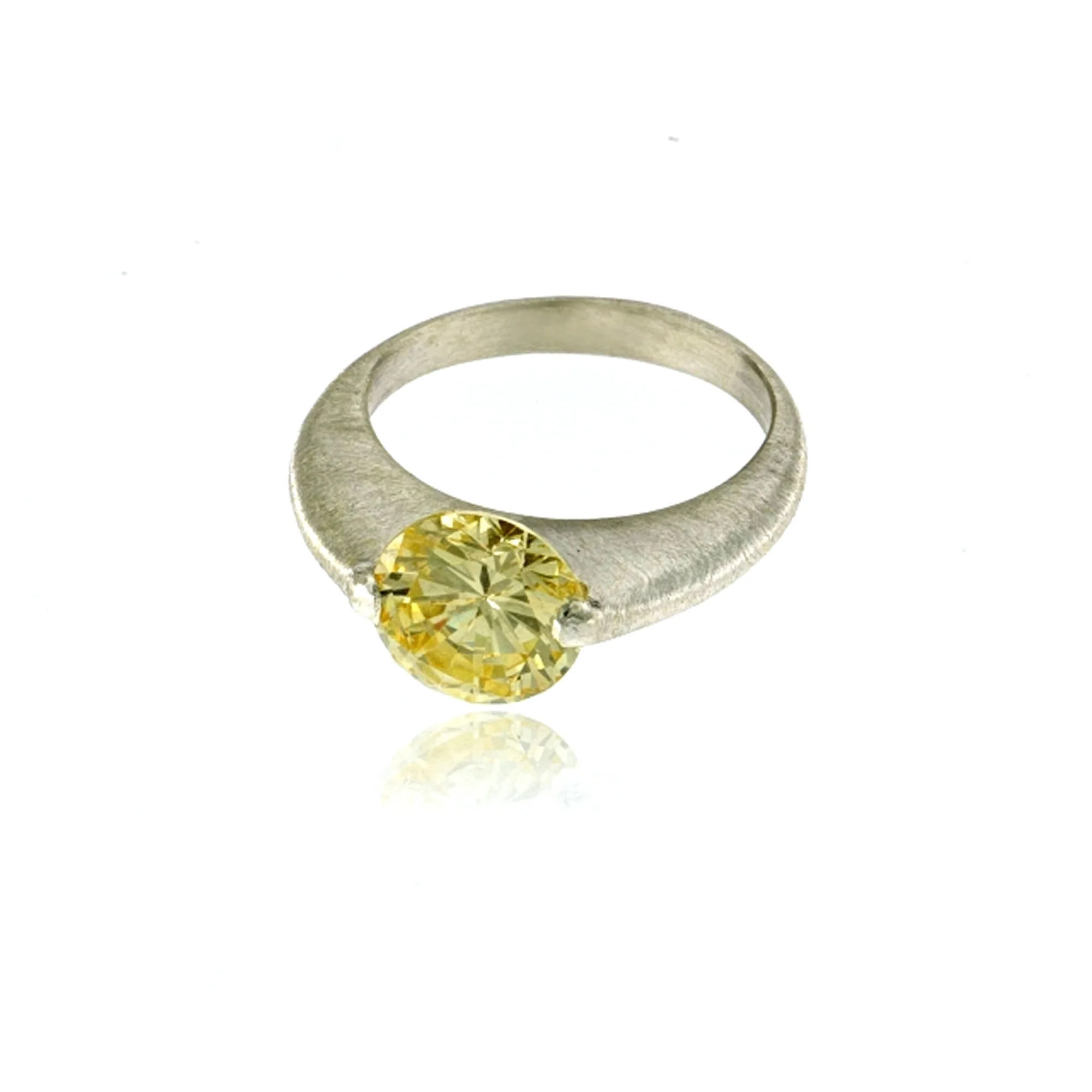 RING SILVER “GALACTIC” TALL OVAL BAND MATTE FINISH 9mm LIGHT YELLOW CZ
