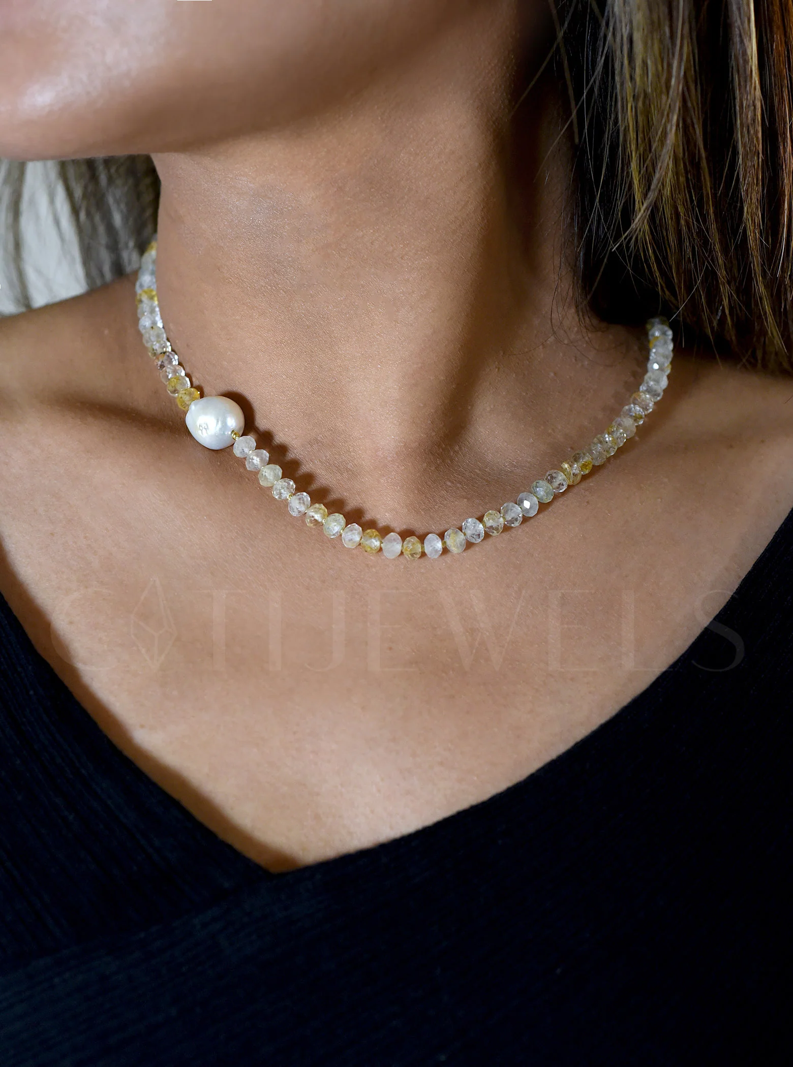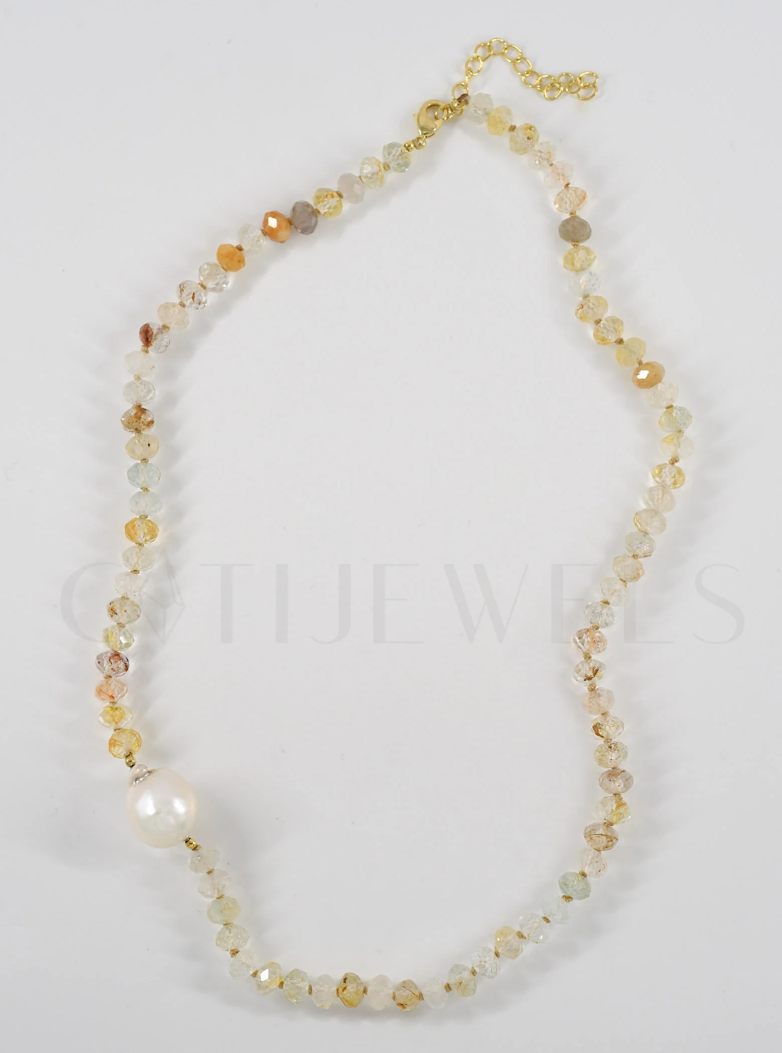 RUTILATED QUARTZ AND PEARL NECKLACE