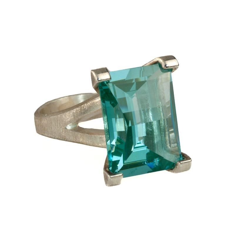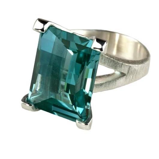 RING SILVER “MODERN CUT” COCKTAIL 16x12mm PARAIBA SHADE CREATED SPINEL IN 4 PRONG SETTING