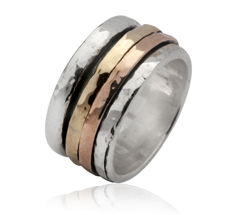 Sterling Silver Spinner Ring with 9K Rose and Yellow Gold Spinners