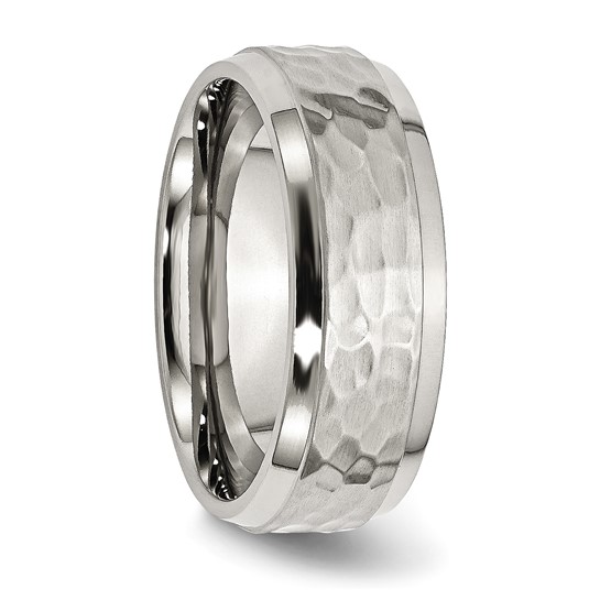 Stainless Steel Brushed Polished and Hammered 8mm Beveled Edge Band