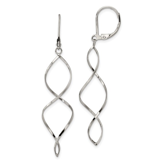 Stainless Steel Polished Twist Dangle Leverback Earrings